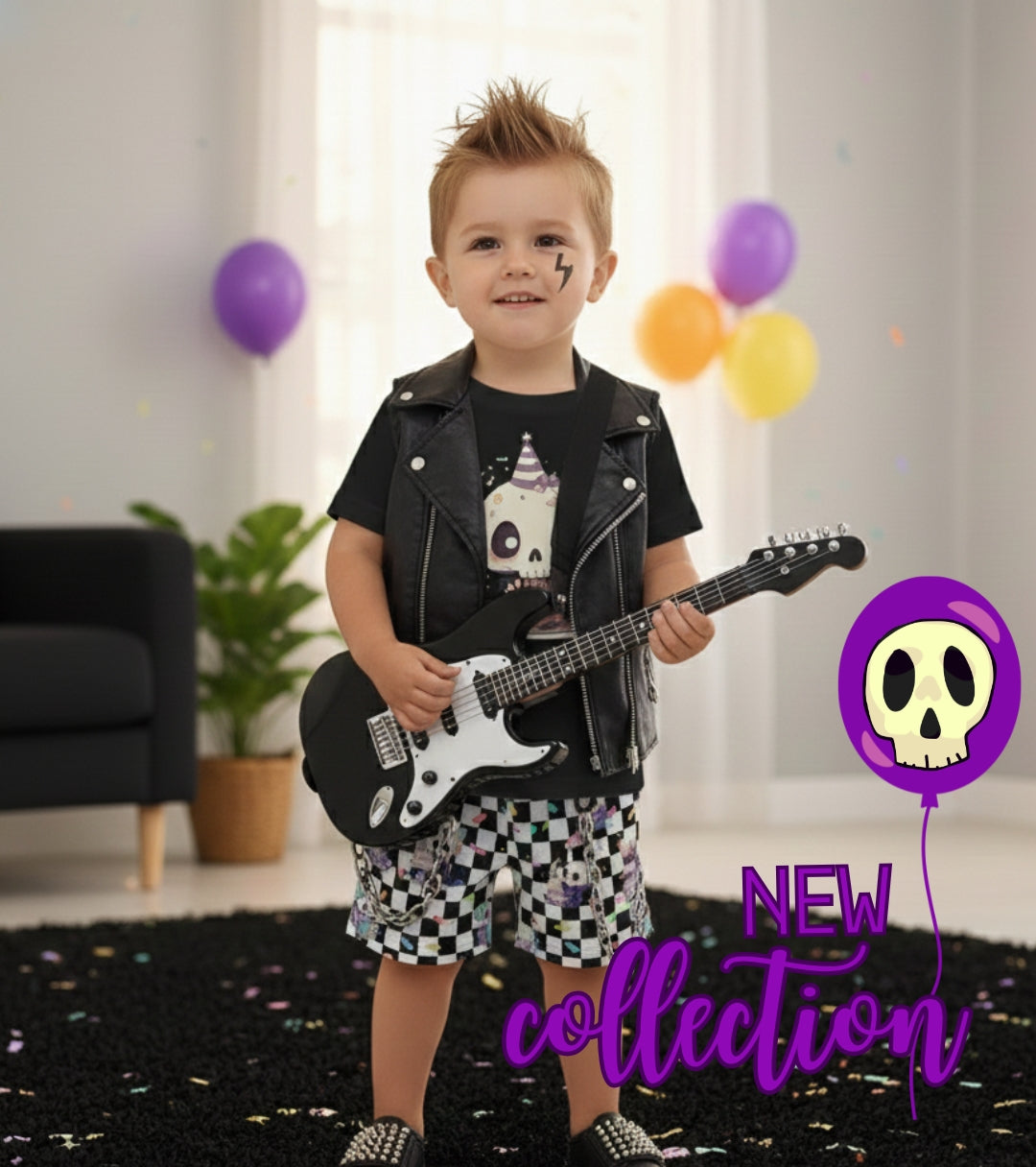 These are outfits for tiny rebels, future rockstars, and mini ghouls — because style doesn’t have to wait until you’re grown up. Whether it’s skulls, bats, or moody florals, my designs let kids express themselves while letting parents share a piece of their own style and passions.