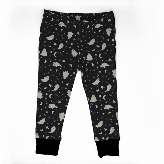 • Black children's pants with white ghost and moons pattern