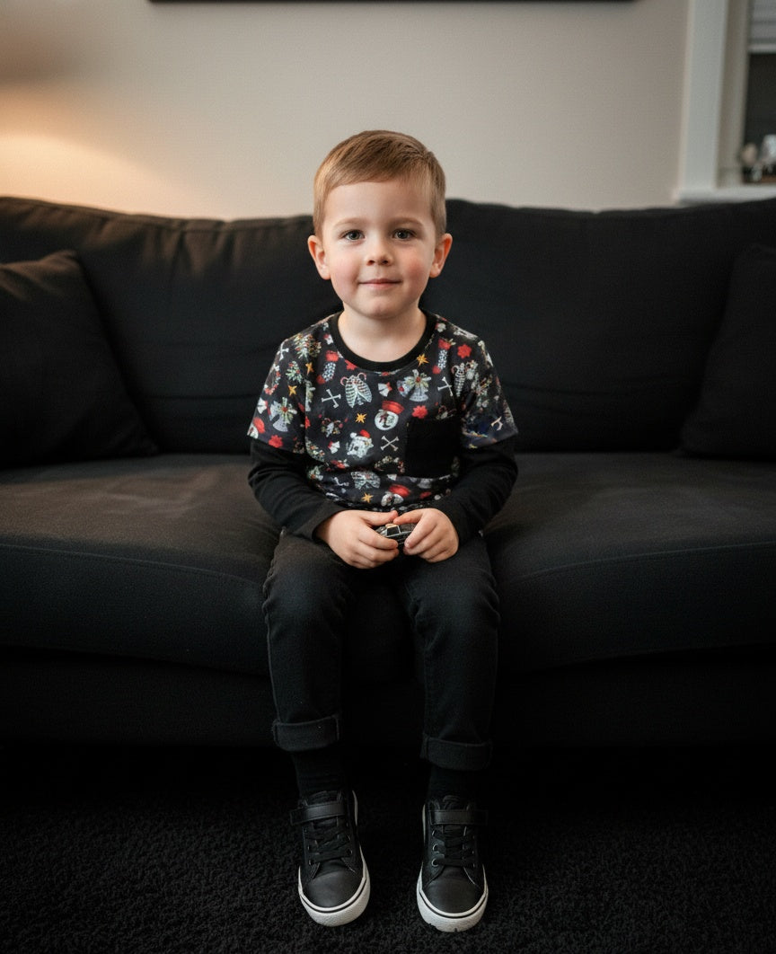 This Spooky Birthday layered T-Shirt features our exclusive birthday print with cute little ghouls, creepy cakes, and party vibes — perfect for kids who don’t do basic birthdays.