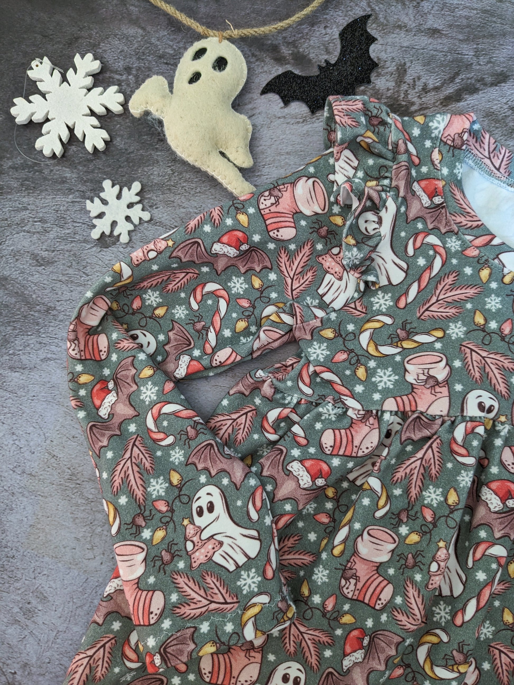 Featuring unique spooky designs, these customizable tops allow you to select short sleeves, long sleeves, or sleeveless options. You can also add ruffles on the sleeves for a festive, stylish touch.